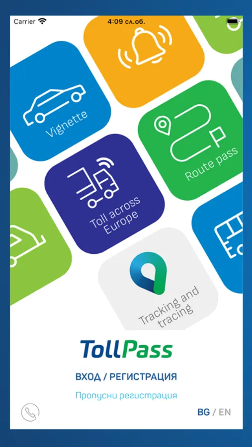 TollPass App осигурява възможност използването на основни функционалности и удобства от онлайн платформата за пътни такси и услуги TollPass.bg