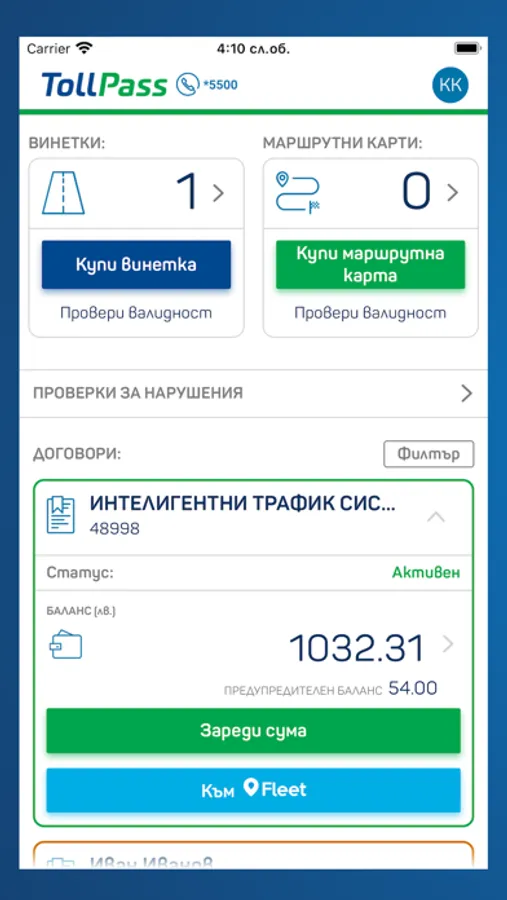 С най-новата функционалност TollPass Fleet в мобилното приложение контролът е във Вашите ръце навсякъде и по всяко време: