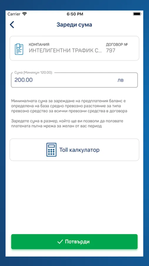 TollPass App ensures the use of basic functionalities and services of the online toll platform TollPass.bg.