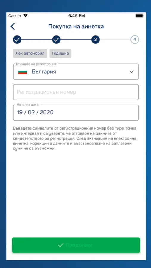 • Добавяне на данни за винетка и получаване на известия за валидност