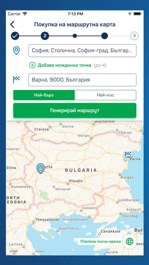 TollPass App не изисква регистрация за заплащане на предплатените продукти - маршрутни карти електронни винетки.