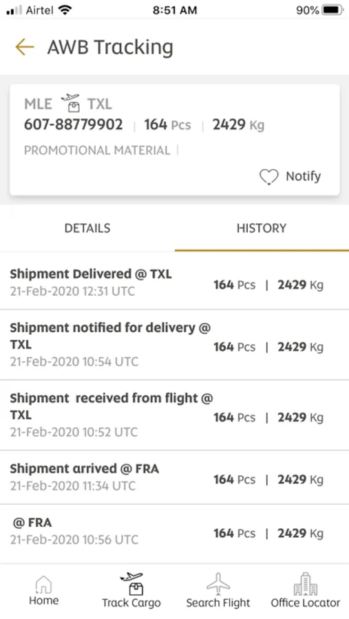 • Configurable mobile push notification set up for up to 10 AWBs for key milestones