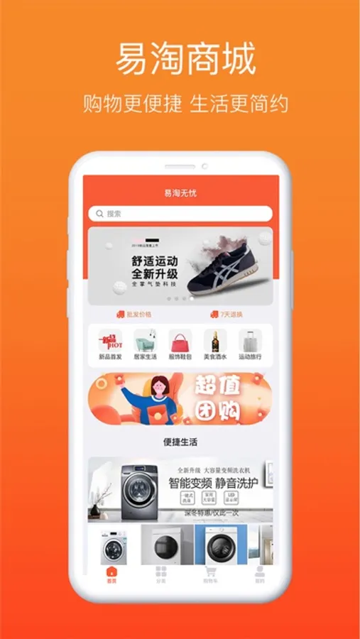 易淘无忧是一款标准化的B2C购物商城,主要帮助线下实体门店和商家实现线上转型升级,线上和线下相互融合。