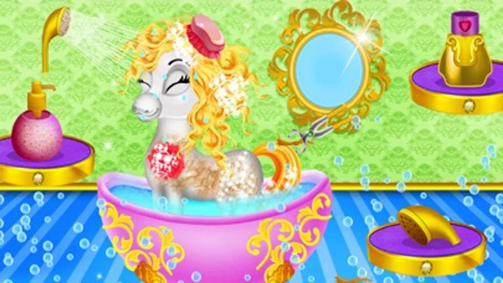 Let’s fulfill the dream of taking care of your own Royal pet house by entering the world full of pony makeover beauty salon adventures. Princess pony daycare is giving the opportunity to become the best pet horse babysitting nanny. Makeover the pony little horse house of your own choice. Start the little pony horse adventure in the baby pony daycare game. Pony makeover beauty salon care objective is that the little pet pony has a perfect breeding and grooming!
