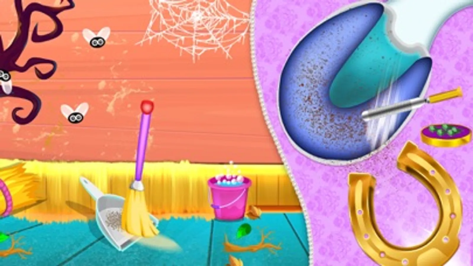 Little horse stable looking mess all around you has to take care of it. Before your little horse makeover you have to do stable cleaning to make your cute baby pet home look clean. Stable Cleaning is essential in order to ensure the safety and health of your. Clean all your little horse stalls, use pitchforks to clean the poop and dump all dry branches in a stable cleaning game. When stalls are not cleaned properly, they may attract insects and rodents that may affect your baby pony health and well being. So keep baby animal stalls clean and neat in a fun cleaning game.