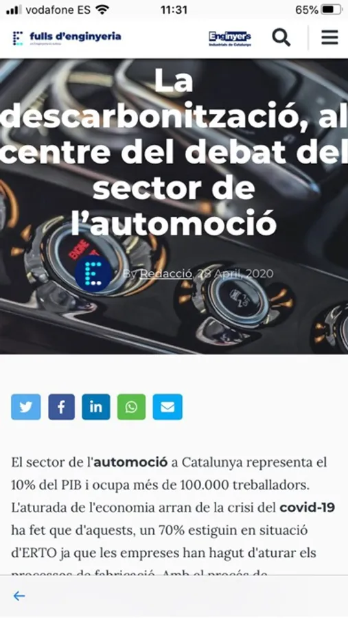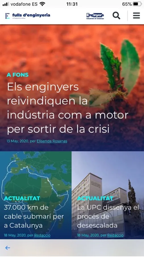 Fulls d'Enginyeria és una publicació digital elaborada des de l'Associació / Col·legi d'Enginyers Industrials de Catalunya per difondre l'actualitat del món de l'enginyeria en el seu concepte més ampli. Trobareu notícies, reportatges, entrevistes i articles d'opinió amb la tecnologia, el canvi climàtic, la tecnologia, la salut o l'emprenedoria, entre d'altres, explicada pels seus protagonistes amb rigor, veracitat i contrast.