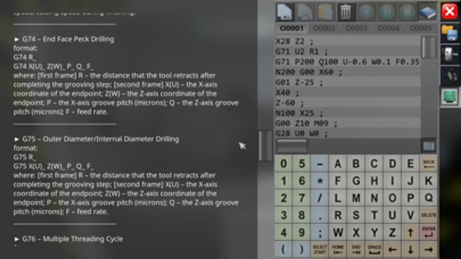 A software simulator of a numerical control (CNC) lathe is an educational methodological development intended for basic familiarization of novice machine building specialists with the principles of programming parts turning operations using standard G/M-code (Fanuc System A).
