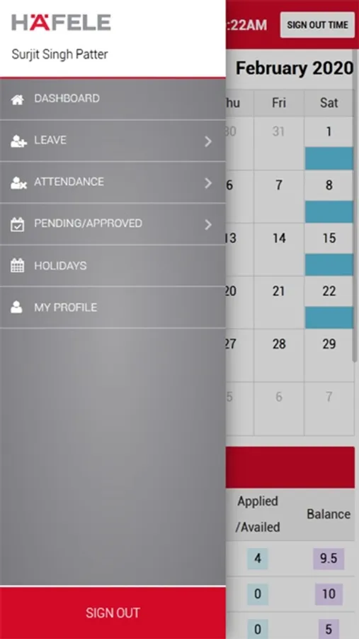 HAFELE - Attendance is for Hafele south Asia employees to manage their Leaves & attendance in system using Mobile Phones.