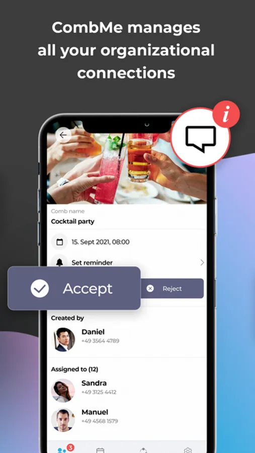 new app, CombMe is (and will remain) free for private users. Just download it from the App Store and invite your contacts.