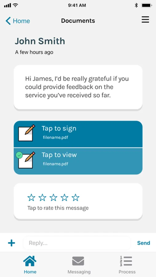 • Send messages and photos direct to your fee earner (without needing to provide a reference or even a name)