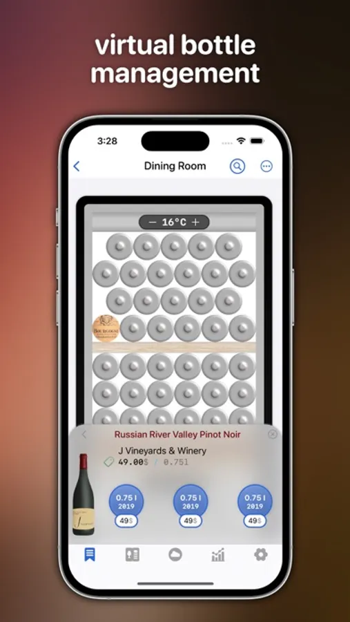 * Track your open bottles (for users of wine saver systems, including fill level & date)