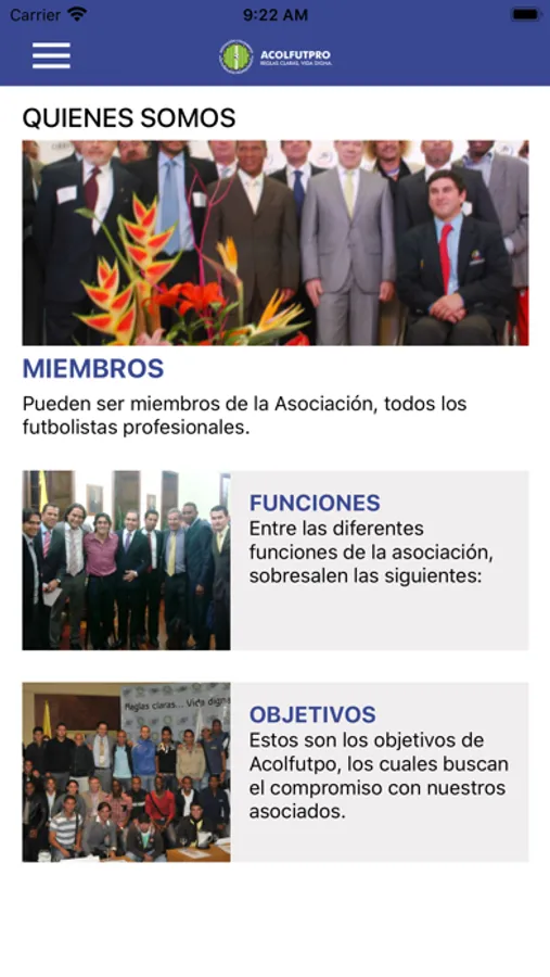 En la APP oficial de la Asociación Colombiana de Futbolistas Profesionales (ACOLFUTPRO), podrás acceder como asociado(a) a: