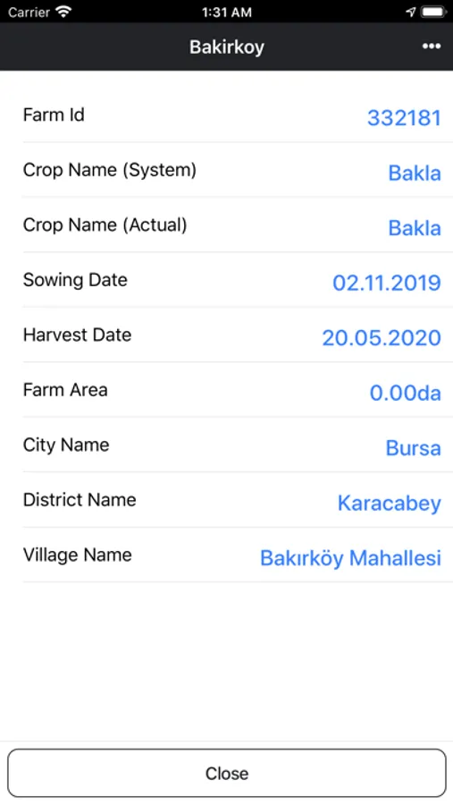 It is possible to use FieldWork Mobile App during field visits to improve its efficiency. Users may draw and save desired amounts of fields and may update when required. Fields are kept as both polygon and point. Attribute information (cultivated crop type and variety, dates of sowing and harvest) may be added into saved locations.