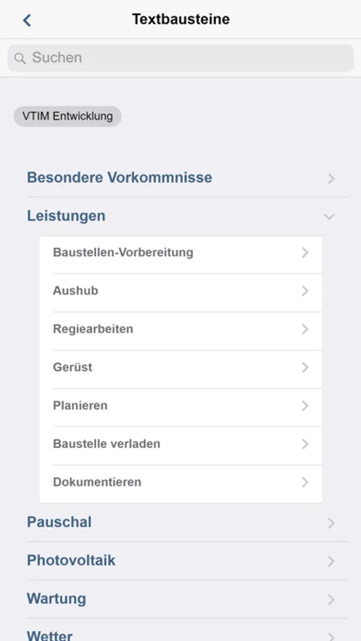 Eine Leistungserfassung oder andere nachrichtliche Informationen zu dem Projekt können über die Textbausteine eingegeben werden. In der App aufgenommene Fotos werden automatisch dem Projekt zugeordnet und werden direkt an die TIM Zeiterfassung Software gesendet. Ebenso können Fotos aus dem Album dem Projekt vor Ort zugeordnet werden. Je nach Einstellung in der TIM Zeiterfassung werden die Buchungen mit der aktuellen Standort Information versehen. Ein Standort Tracking findet jedoch nicht statt.