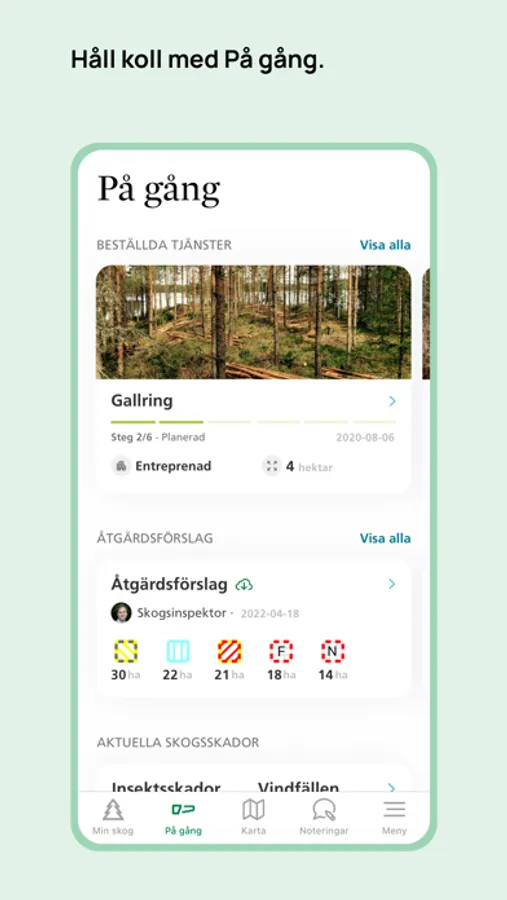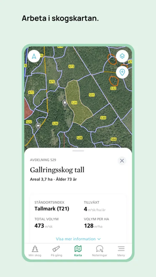 - Få din skogsinspektors rådgivning direkt i appen så du enkelt kan komma åt den i skogen.