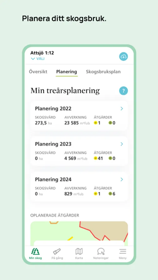 - Ta del av din skogsbruksplan på ett nytt sätt och skapa upp din egna planering för ditt skogsbruk genom att redigera de föreslagna åtgärderna.