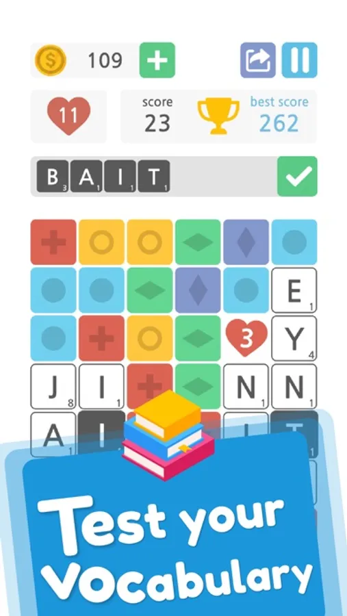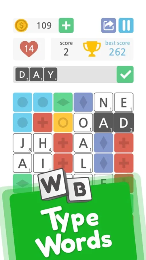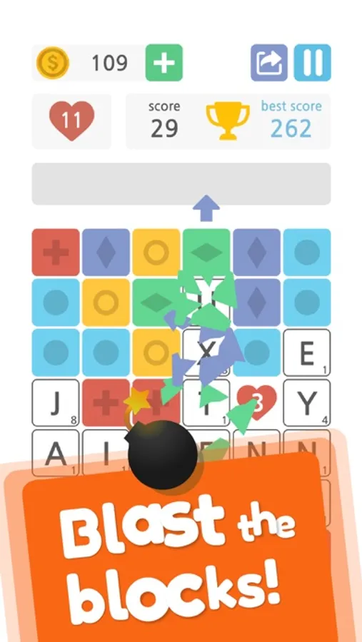 Words & Blocks is a fun word game in which you have to blast the tiles with the same color to find letters and spell words, score as high as you can, taking your time to plan your moves before they run out.