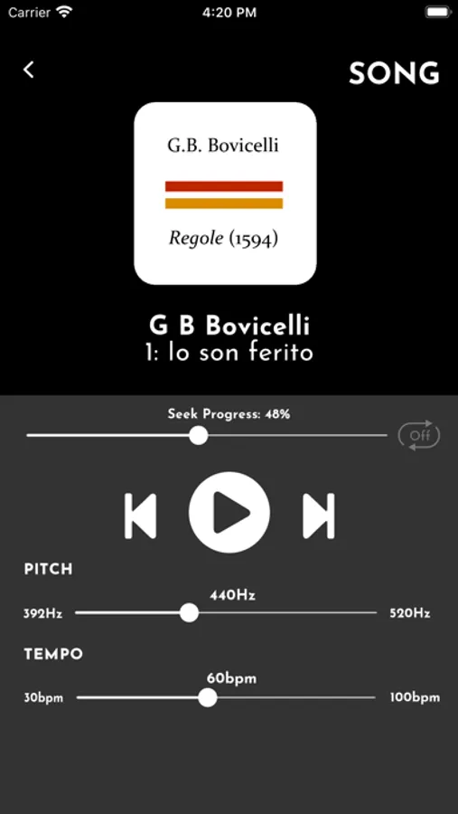 Passaggi is an improvisation and ornamentation practice app for historical performers. The app delivers high-quality audio backing tracks for personal practice, which, when used in conjunction with facsimiles or modern editions of historical sources, enable the user to develop skills in the areas of improvisation and ornamentation. Suitable for students, amateurs and professionals alike, the app features adjustable pitch and tempo settings and user-defined looping capabilities. Tracks are recorded using a sampled historical organ in a temperament appropriate to the repertoire and are designed to complement the pedagogy of historical treatises.