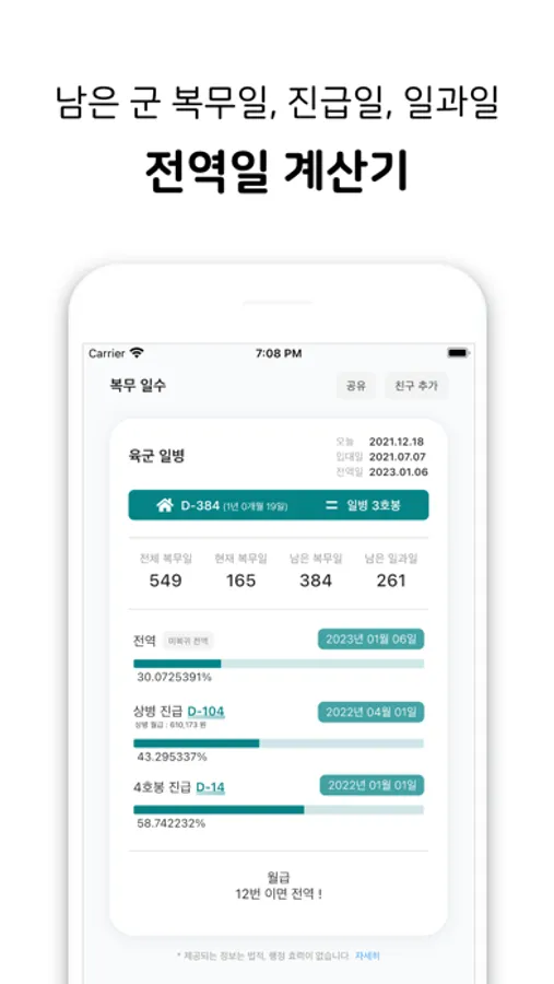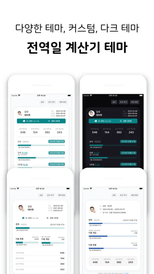 * 남은 전역일, 현재 복무일, 진급일까지 한눈에!