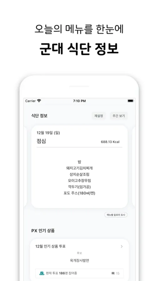 : 오늘, 내일, 다음주 급식 메뉴까지 확인 가능해요! * 메뉴별 칼로리 표시 옵션 제공! 커뮤니티 기능