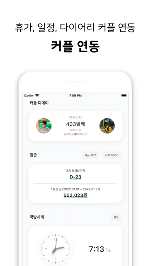 : 연인끼리 연결 설정 시 휴가, 일정, 한줄평 등 데이터를 공유해요!