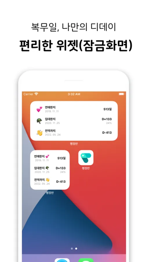 편리한 위젯 : 위젯을 통해 남은 복무일을 한눈에 볼 수 있어요!