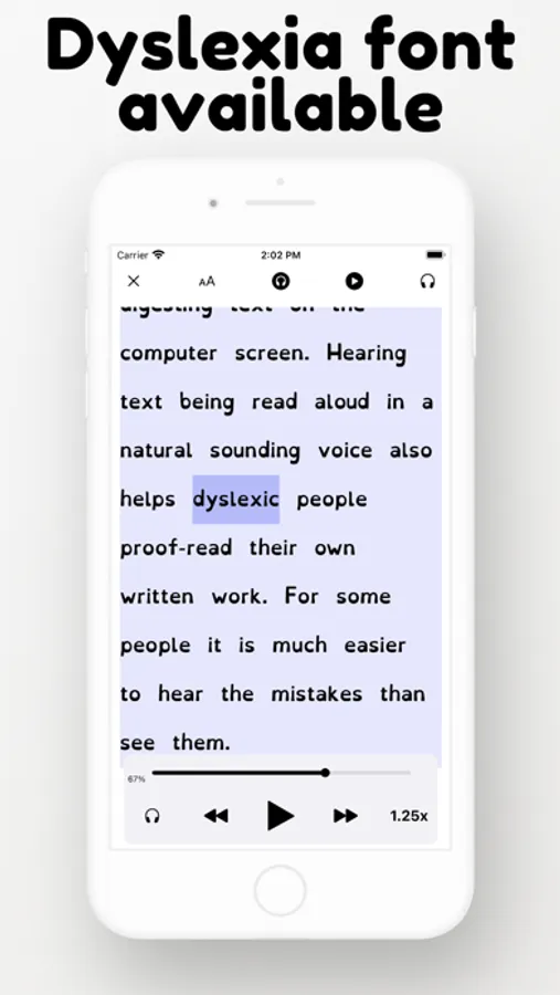 Odiofy offers special fonts for Dyslexic readers and users with lower vision acuity.Please consider contacting us if you are an association who needs our product tailored for your users we are happy to help :).