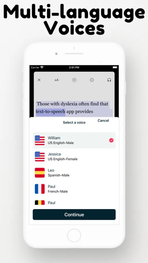• Listen with High-quality reading voices in multiple languages.