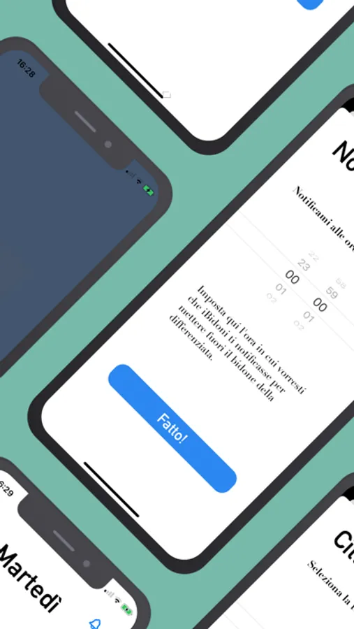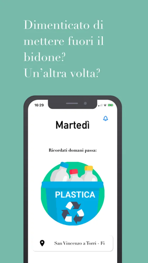 Questa app nasce con l'intento di risolvere una piccola, ma diffusa dimenticanza. Quella di mettere fuori il bidone della spazzatura giusto all'ora giusta. La porta a porta non deve essere un problema, ma una comodità.