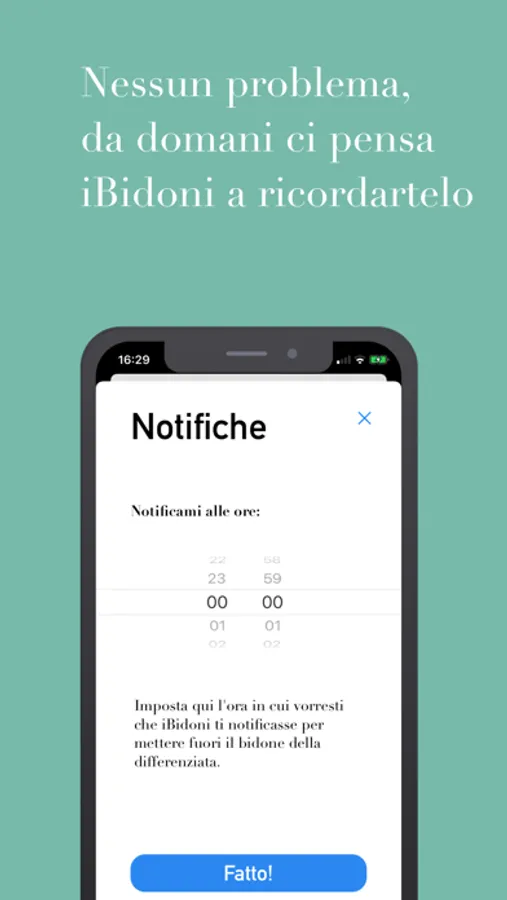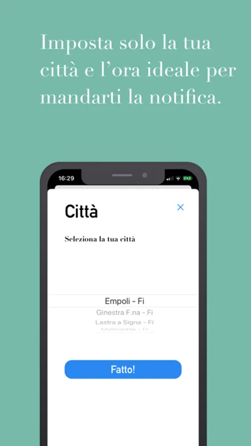 L'unica cosa che dovrai fare è indicare dove abiti e l'ora in cui farebbe comodo essere notificato, l'app penserà a ricordartelo!