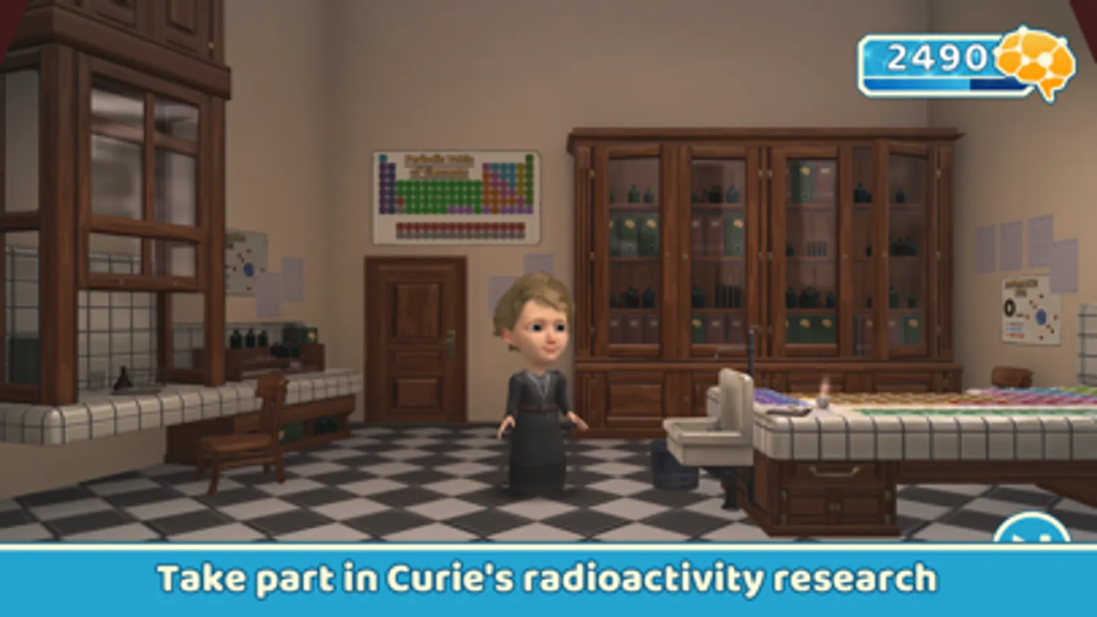 Presented by the Mother of Modern Physics herself, a 3D dancing Curie will be your very own personal tutor, guiding you through tons of levels, helping you when you struggle, sharing bitesize scientific facts, and tell hilarious jokes along the way!