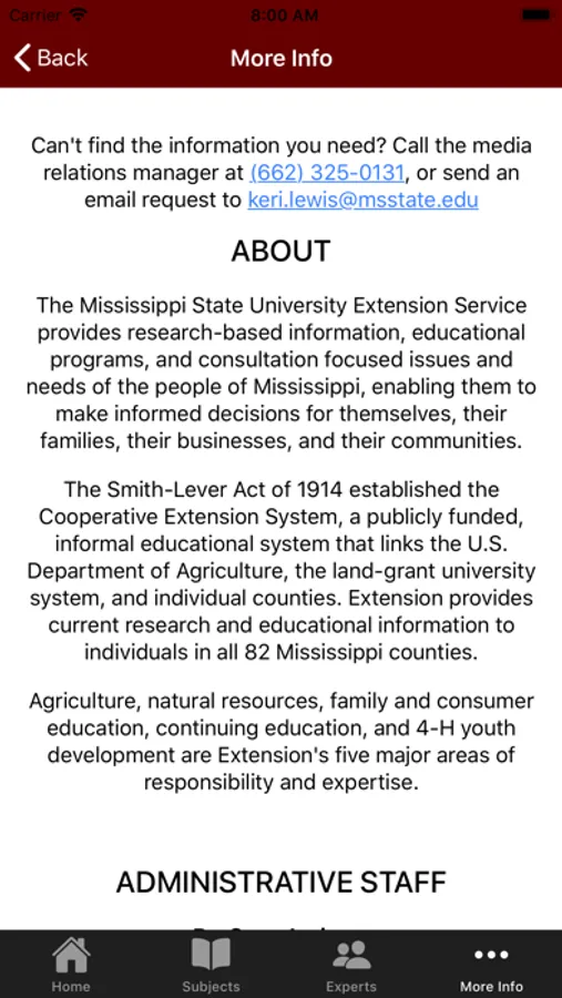 The MSU-E Experts app will help you locate an Extension expert in any county. We have experts in every field willing to help with crops, cattle, economics, food preparation, and much more. Search by the expert's name, expertise, or responsibilities or search by the subject your are wanting.