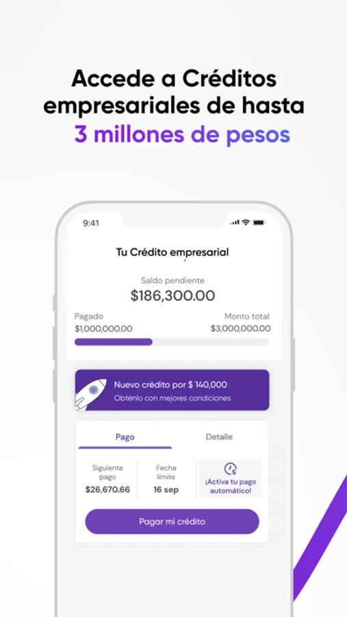 Recibe recordatorios previos a tu fecha de pago, directamente en tu app. Sabemos que el tiempo es muy valioso para ti y queremos que lo aproveches en tu negocio.