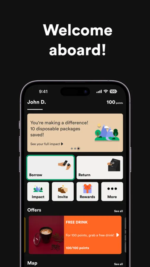 Cano helps you make sustainable choices by providing you an easy to use solution for your meals and drinks on the go. With the Cano app, you can borrow reusable containers at our partners locations and get rewards. It’s that easy.