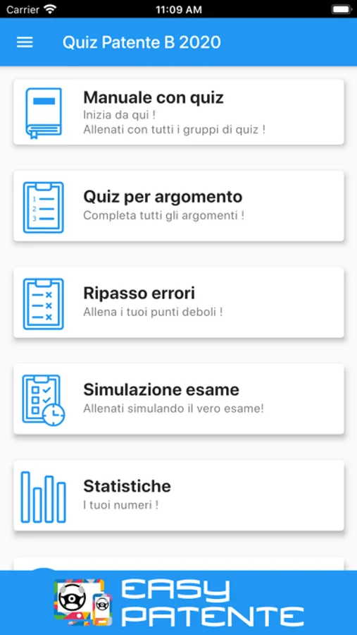 Easy Patente - Quiz Patente B è l'app progettata per svolgere con il metodo più facile e veloce tutti i quiz ministeriali per: