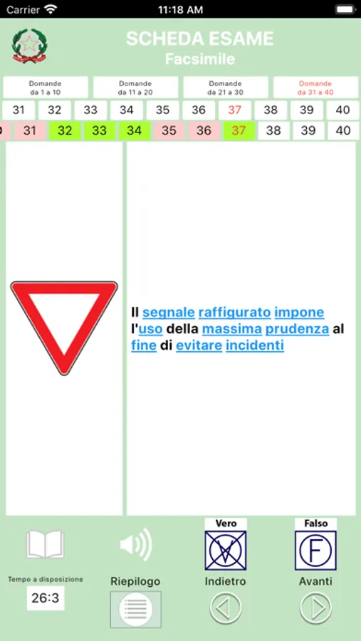 Per aiutare gli utenti a sentirsi più a loro agio durante l'esame finale, la grafica e il modo di usare le schede è quasi identico a quello che sarà proposto al candidato in sede d'esame.