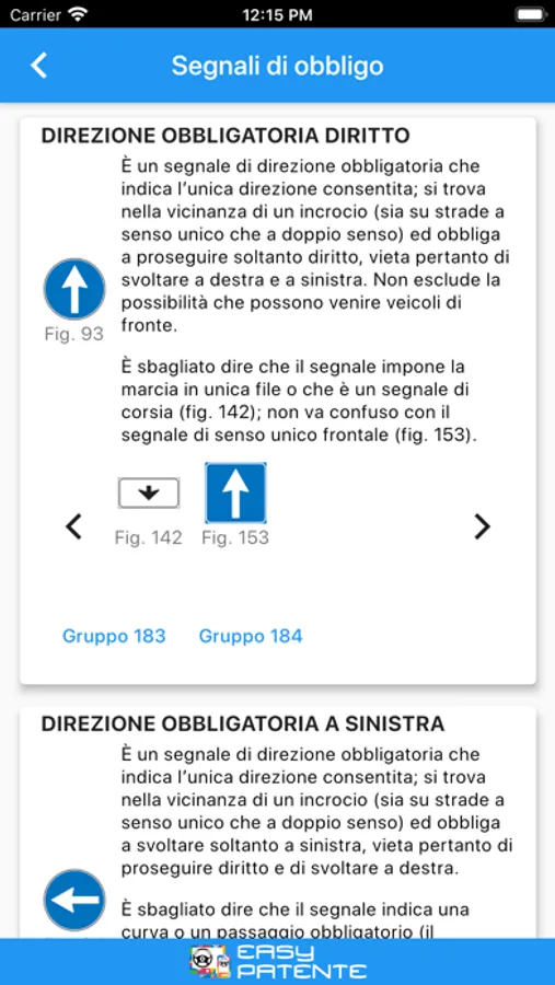 Ogni contenuto del manuale di teoria presente nella app è collegato ai gruppi di quiz relativi al contenuto.