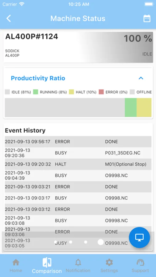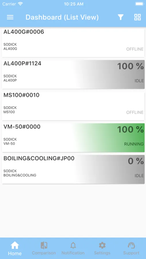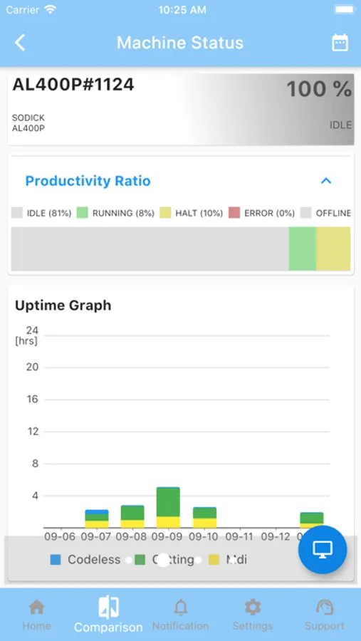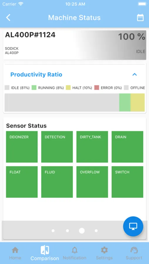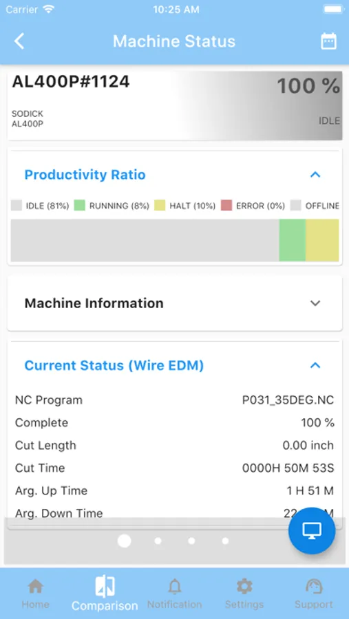 The Sodick IoT app gives our customers direct access to real time information regarding their Sodick Machining Tools. Get up to the minute information such as the current NC program that is running and its completion percentage. View analytical data such as average uptime information and view historical and sensors data.