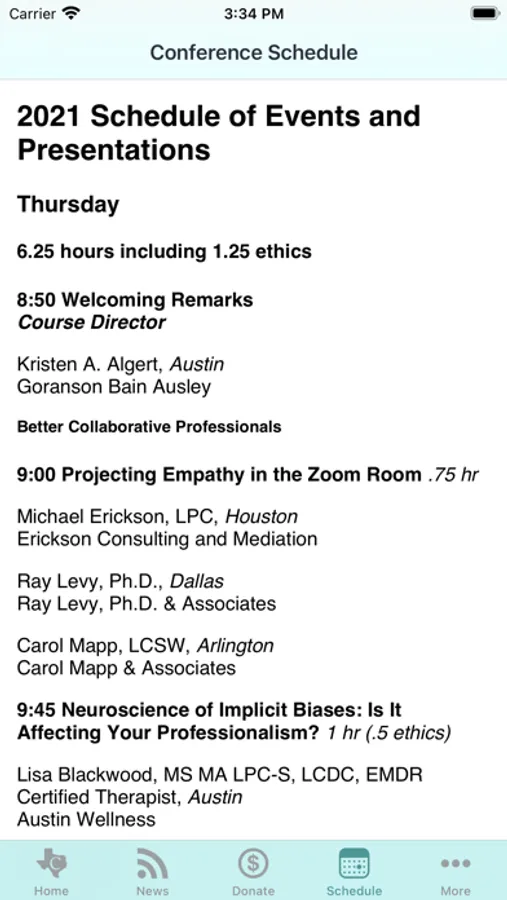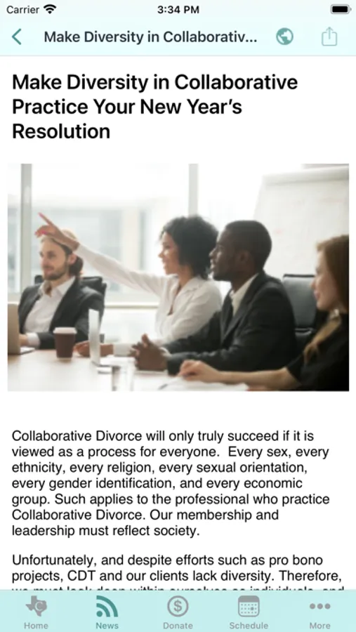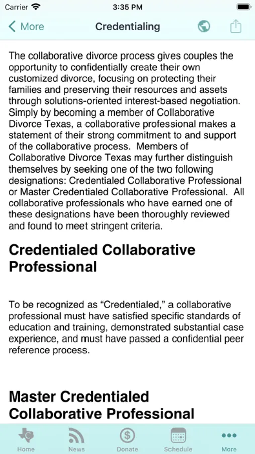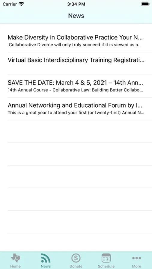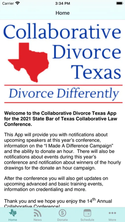 The Collaborative Divorce Texas app will provide you with notifications about upcoming speakers at this year’s conference, information on the “I Made A Difference Campaign” and the ability to donate an hour. There will also be notifications about events during this year’s conference and notification about winners of the hourly drawings for the donate an hour campaign.