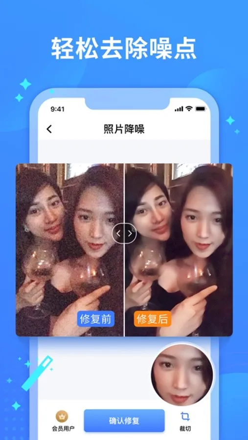 基于先进的人工智能技术,轻松修复老旧照片上划痕、折痕、模糊以及斑驳,提升照片质感,让您记忆中的照片重获新生!