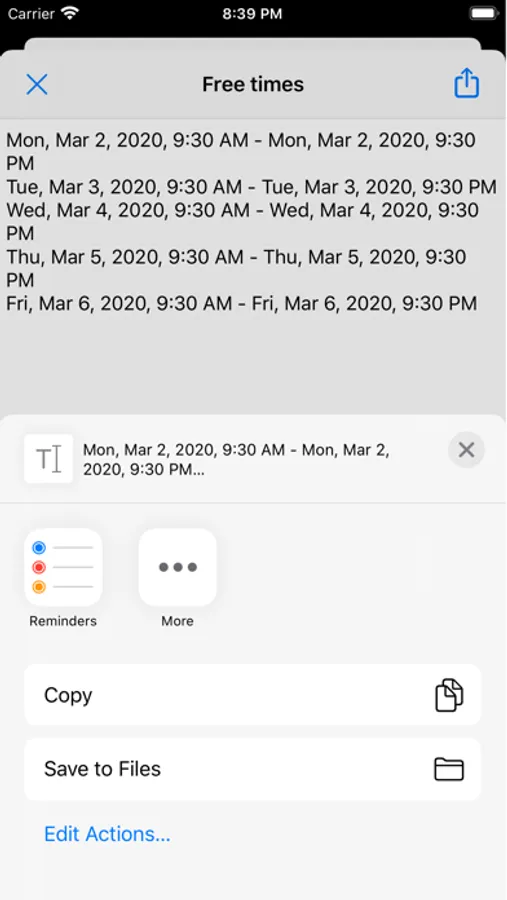Paste the search result to the clipboard, attach it to the mail as it is, or check the free time without launching the application.