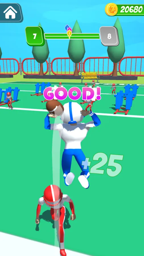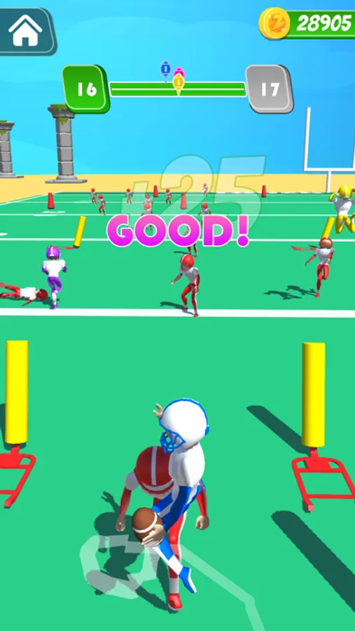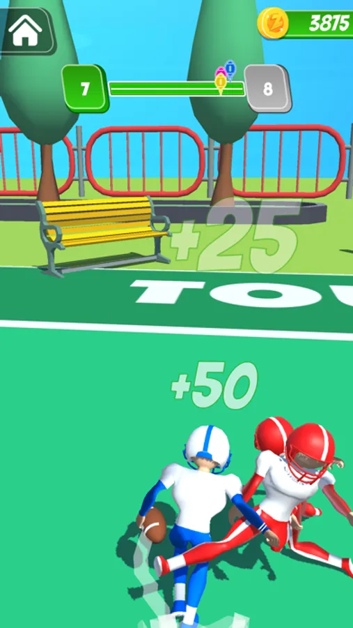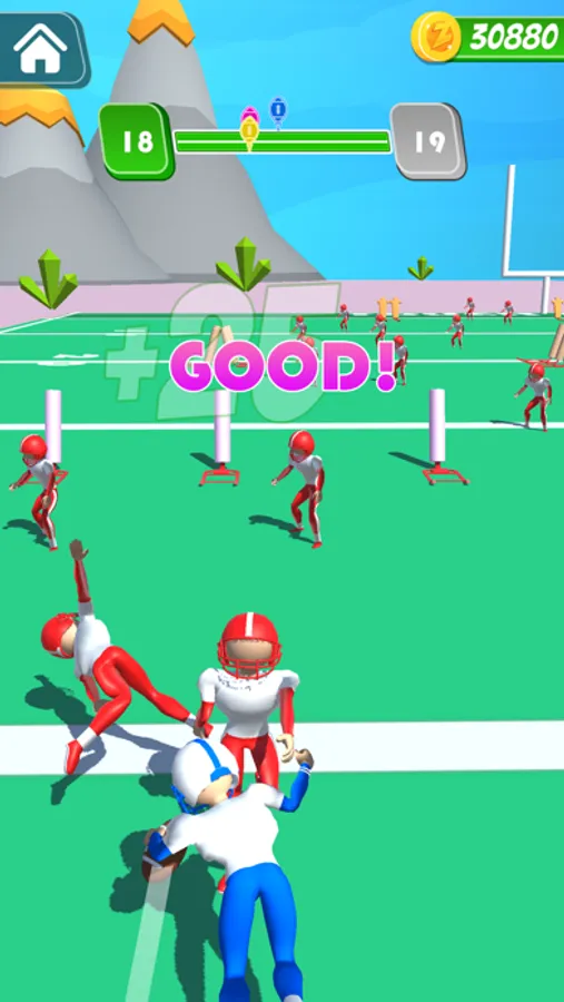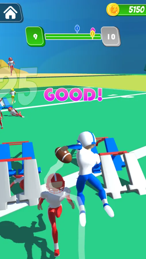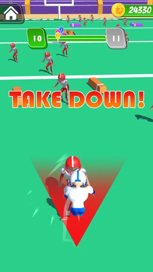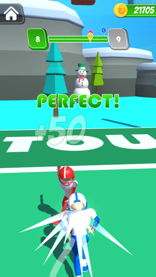 Tap on perfect timing to have a larger impact and hit the opposite players to run to touchdown.