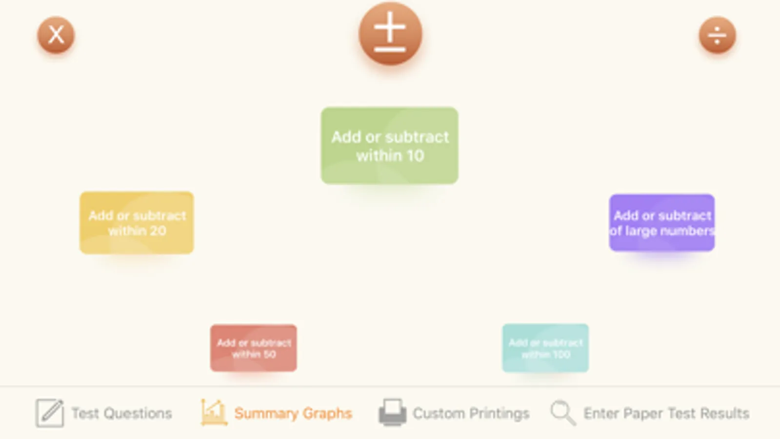 This is an app to improve the calculation ability of addition, subtraction, multiplication and division.