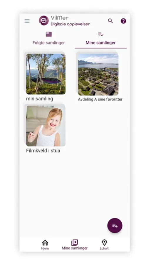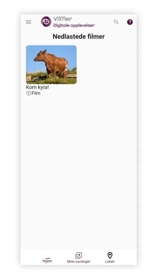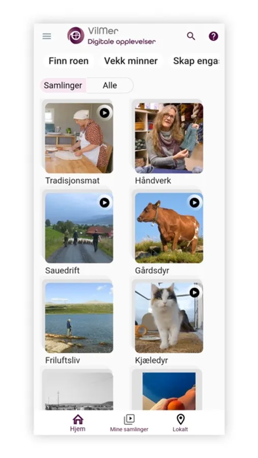 VilMer Digitale opplevelser består av et unikt og tilrettelagt bibliotek av filmer, samtaleleker og bildeserier tilpasset den eldre generasjonen. Biblioteket er kategorisert i samlinger etter formål, interesser og steder. Mange av samlingene er utviklet spesielt for personer med demens.