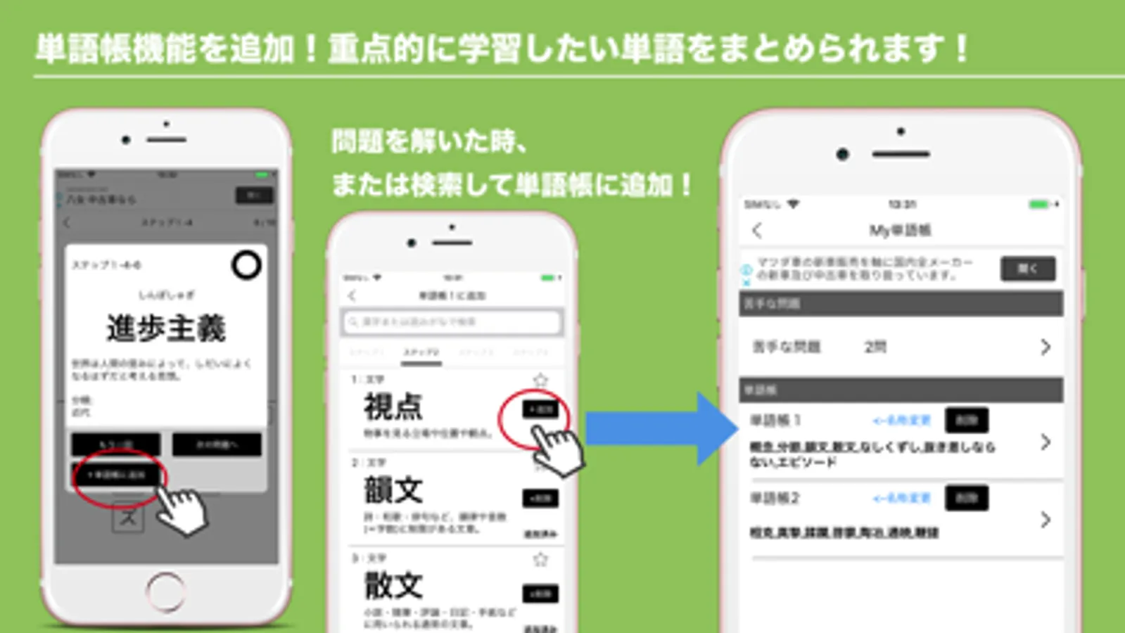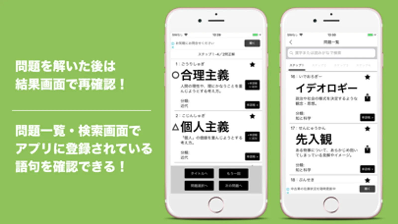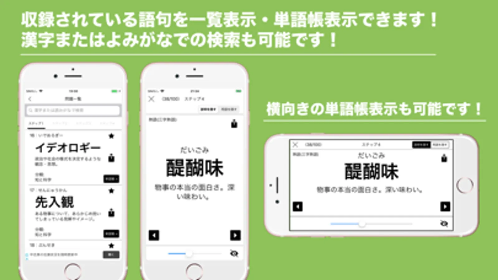 このアプリではクイズ形式で、語彙力向上の学習ができます!