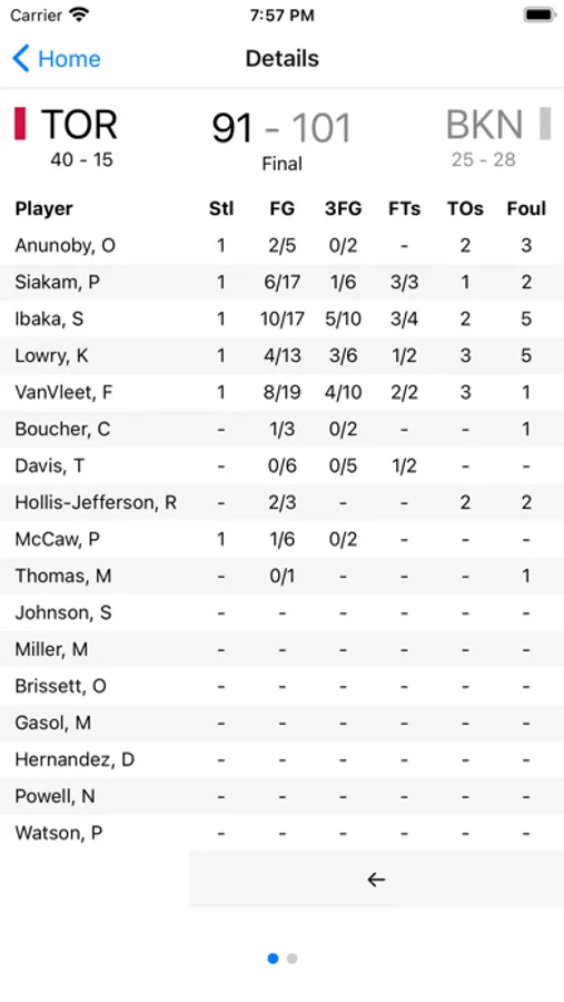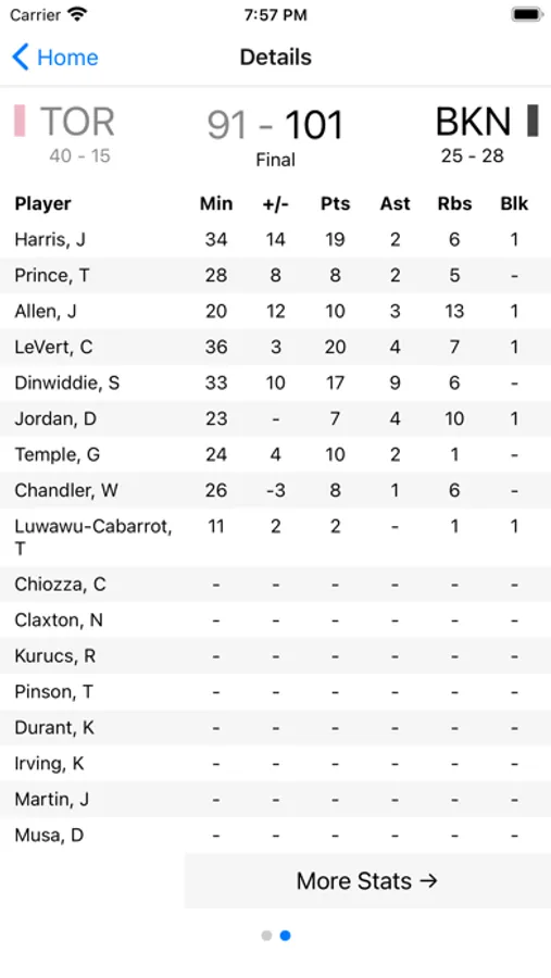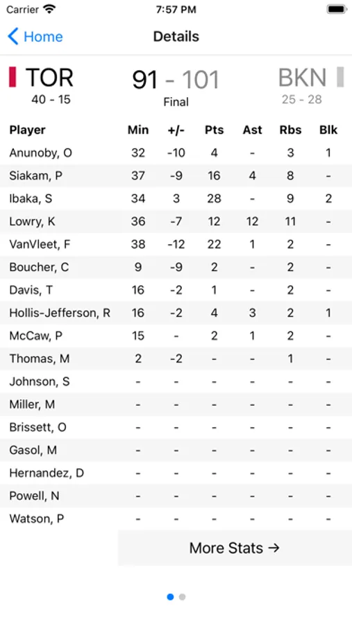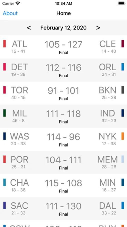 - See scores and stats of completed games!