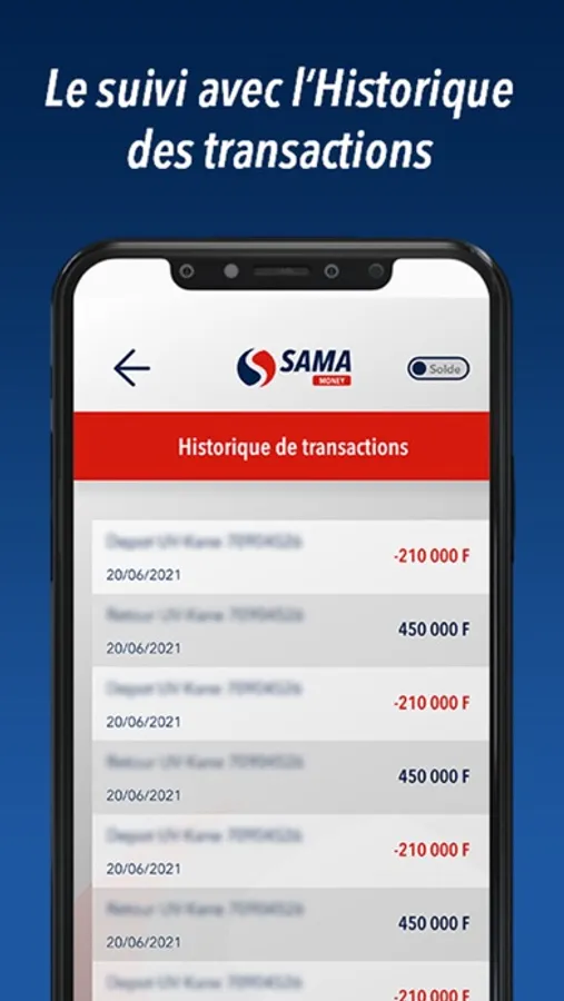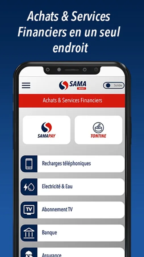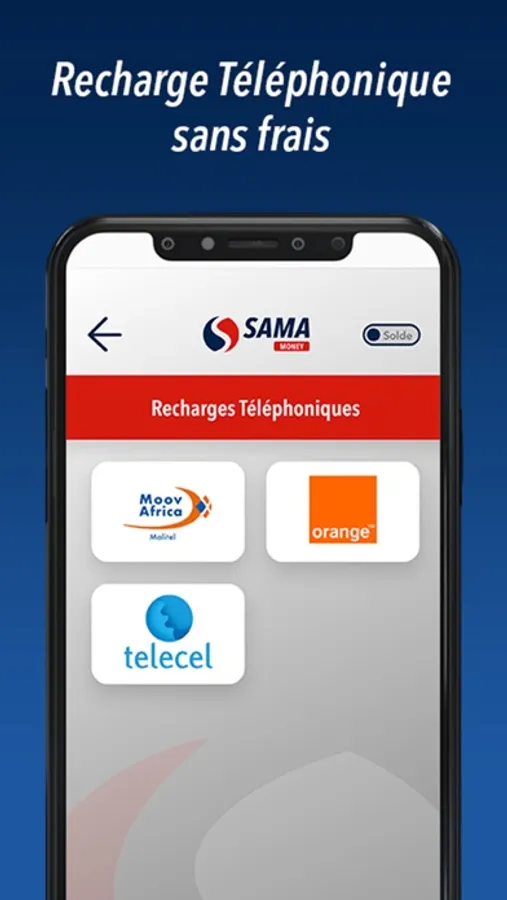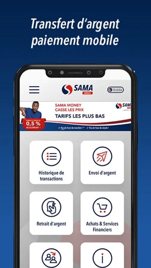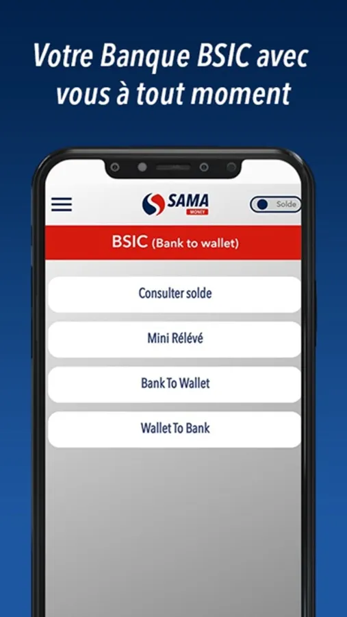 L'application SAMA Money permet au client d’avoir accès à son compte partout, à tout moment et en temps réel, 24h/ 24, 7j/7 utilisable AVEC connexion internet.