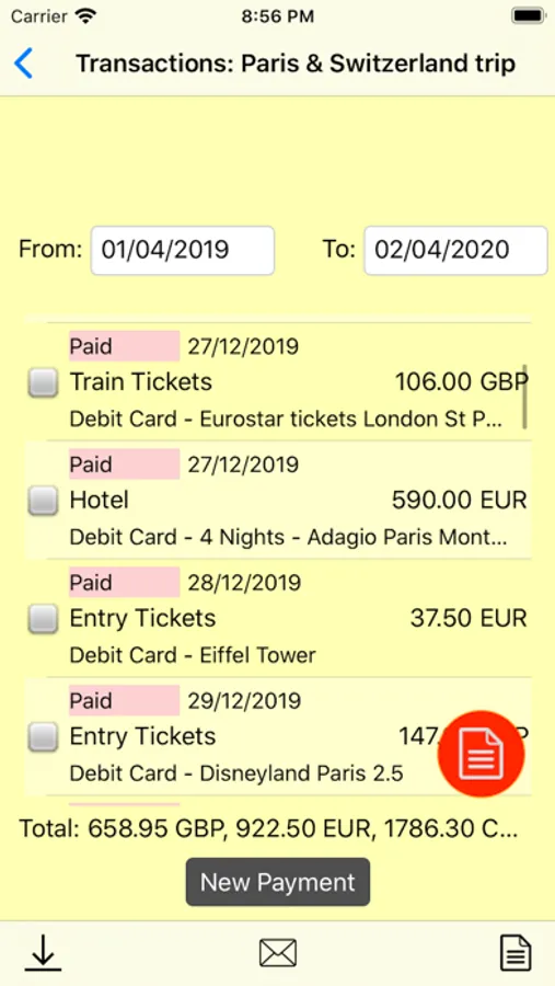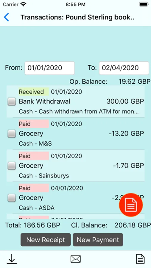 The app provides a Transactions view to record receipts and / or payments. And it also provides a Summary view to report on recorded receipts and payments.