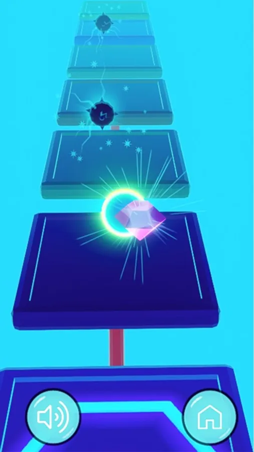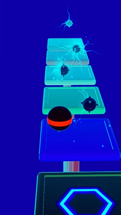 Your ball is bouncing on colorful platforms , but watch out for electric bombs ! When you hit one of them your ball explodes and you have to restart the game.