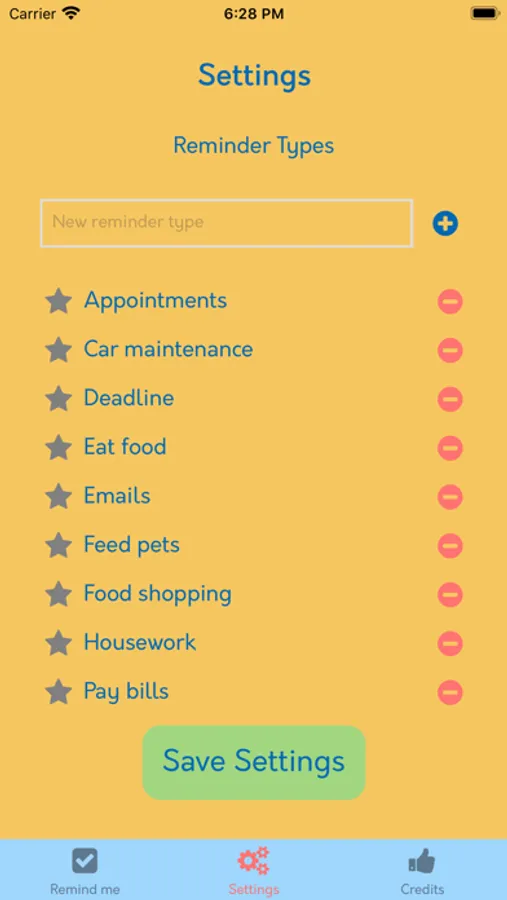 The app comes with some built in reminder prompts, but you can easily customise this list to add or remove as much or as little prompts as you need.